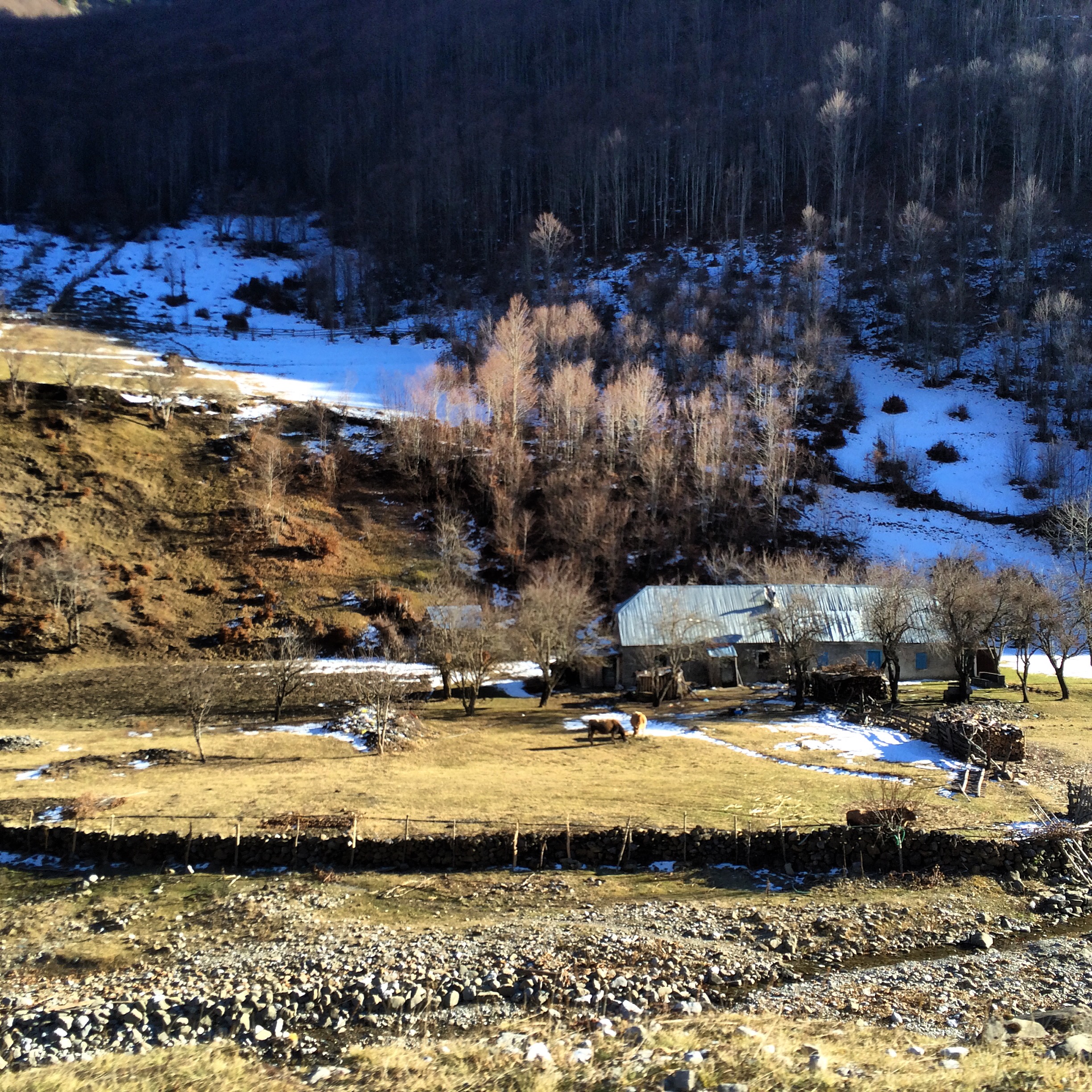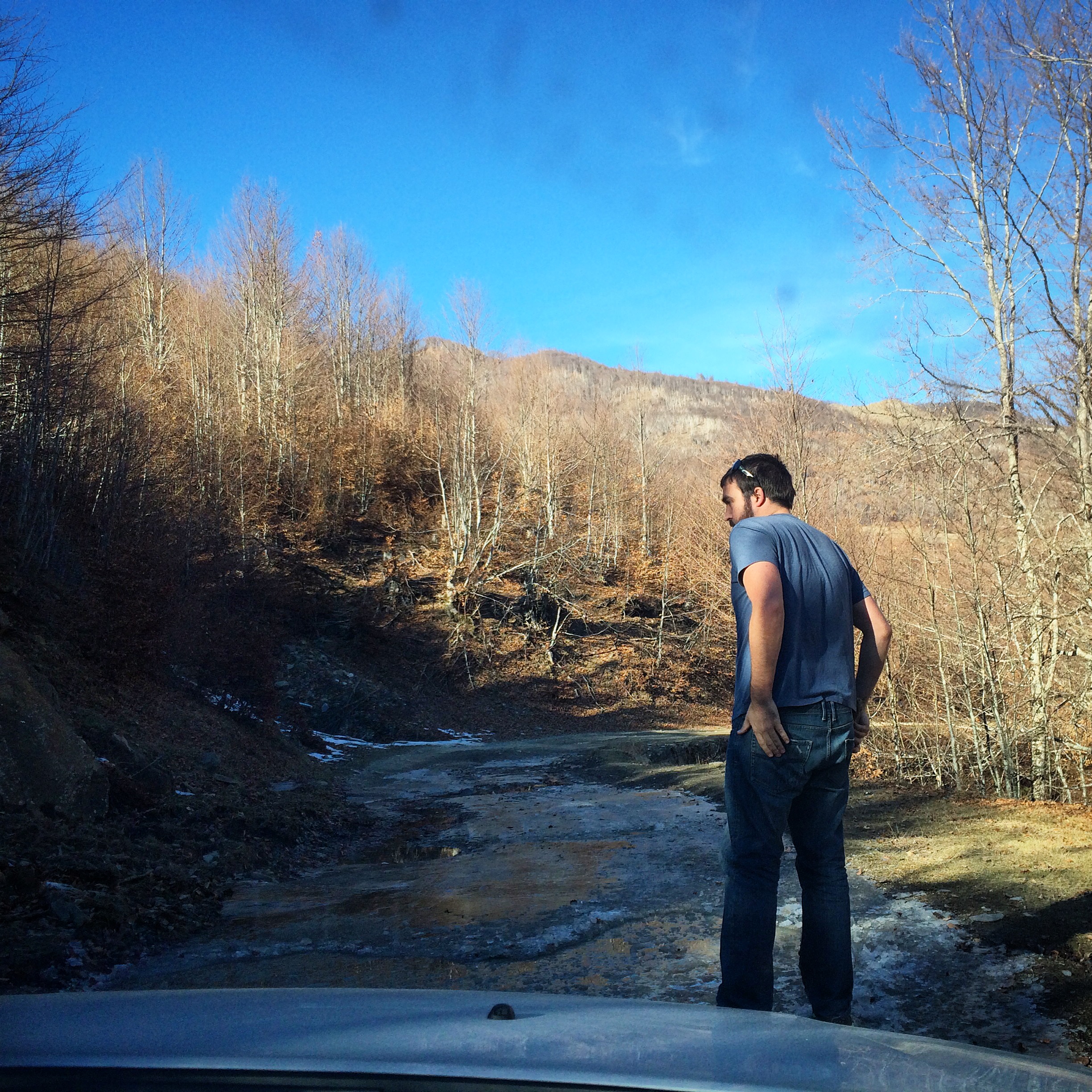 It was quite the adventure, but I am very glad we turned around. I’m fairly sure if we had persisted that it would have ended up in a sorry state of affairs in the middle of rural Albanian nowhere. As it was, Murray got out a few times to re-engineer the road somewhat to navigate some of the worse loose road and potholes. Did I mention that the road was also frozen? We gave up when we discovered that further along the road was not only dirt & potholed but at higher elevations also frozen and covered in ice. Turning back meant an extra 4 hours or so of driving in order to get to the next border crossing, but as it happened, the road we took was beautiful and a totally worthwhile drive. (Also, about 1000x safer.)