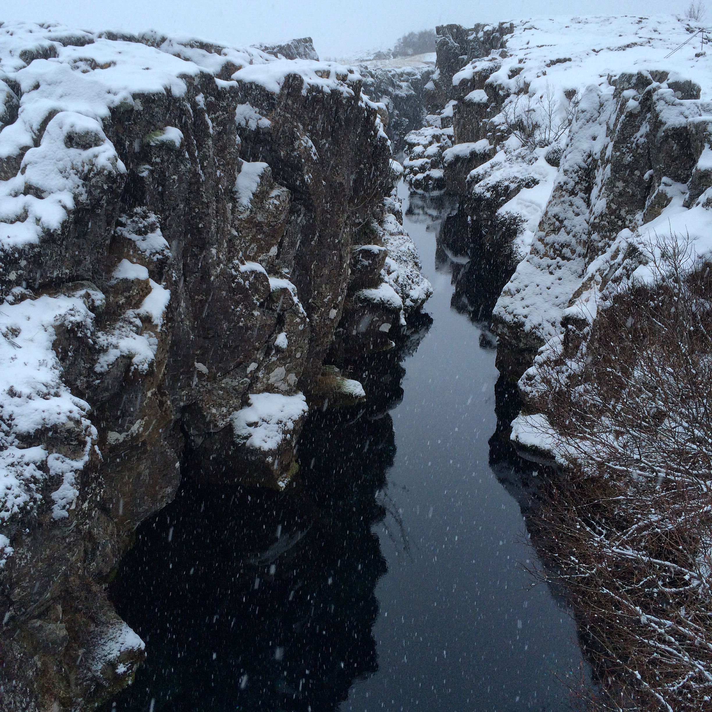 Our tour guide also dropped us off to do a short hike through the snow at Thingvellir, where we got the opportunity to observe the various examples of the continental rift and volcanic rock formations at closer range. The crystal clear waters in the rifts were amazing – so clear and deep, people regularly go diving there in the super-pristine waters. We dutifully chucked some money in to better observe the depth (you’d never believe the water was so super deep otherwise) and were suitably impressed watching the slow drift all the way to the bottom. A lot of money was in that rift…